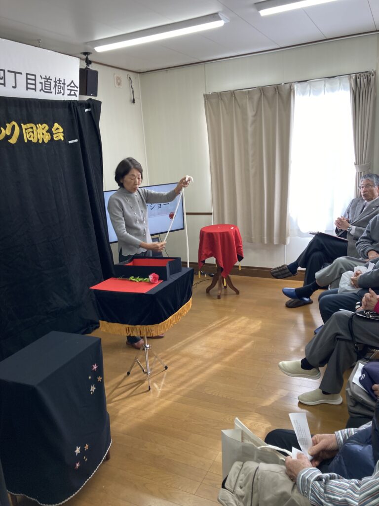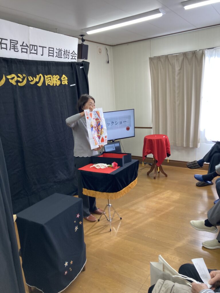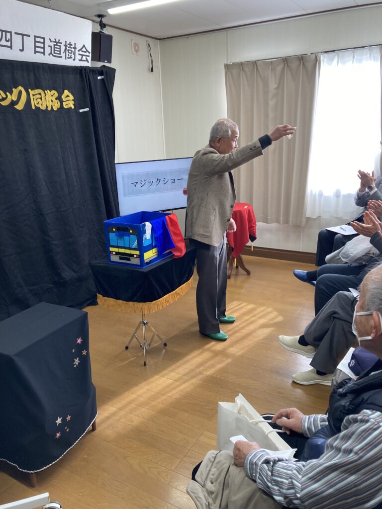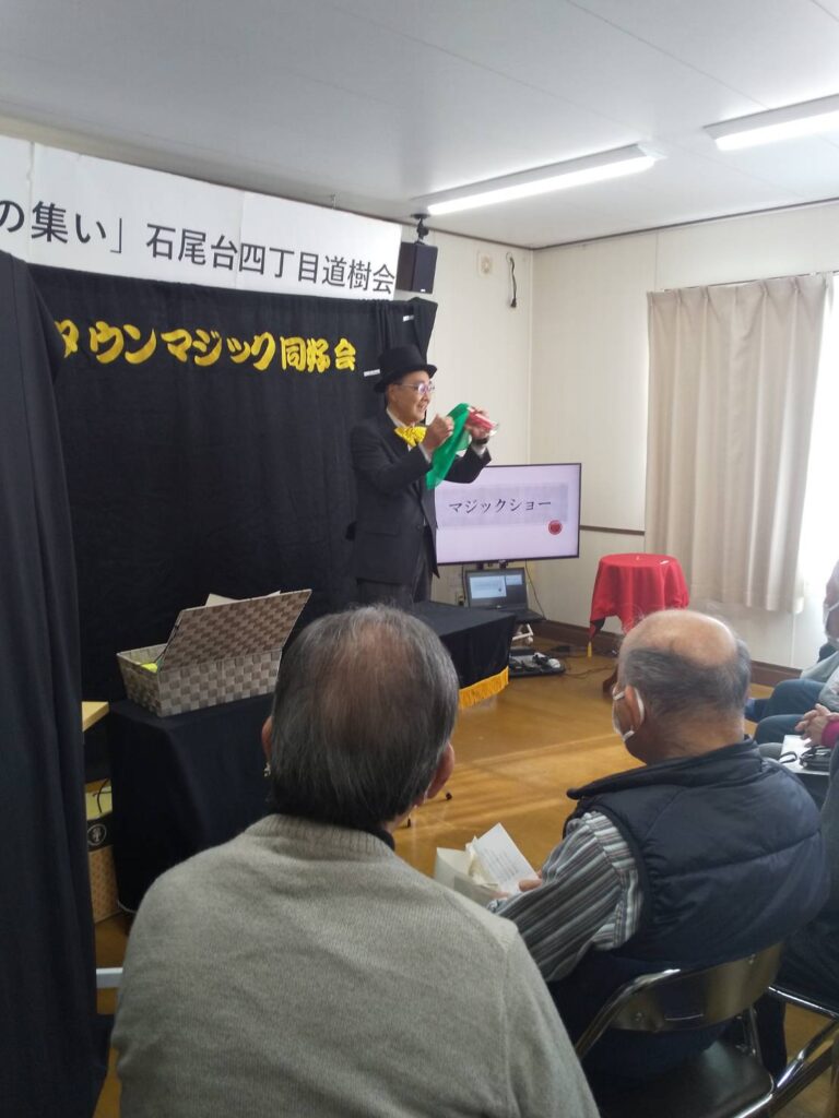 25/01/2026 / 最終更新日時 : 29/01/2026 newtown 公演記録 2026年1月25日 道樹会 積雪が心配されたこの日、山口が前日から道具を運びこんだり準備を進めておりましたが雪は止み、道樹会20名のみなさんにマジックを披露してまいりました。演者は小林、児玉、毛利、山口です。 会長の言葉巧なお金に関するマジックに驚愕し、私のお金も増やしての声が聞こえてきました。児玉さんのマジックには暖かい拍手があり、山口マジックは自らの技に加え松尾氏の技をも披露して皆さんはビックリして楽しんでおられました。 \ 最新情報をチェック / FacebookXBlueskyHatenaCopy
